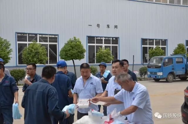 7月26日下午,襄陽(yáng)國(guó)鐵機(jī)電股份有限公司黨支部的主要領(lǐng)導(dǎo)來到生產(chǎn)現(xiàn)場(chǎng)為國(guó)鐵50余名一線員工送上了夏日的清涼。