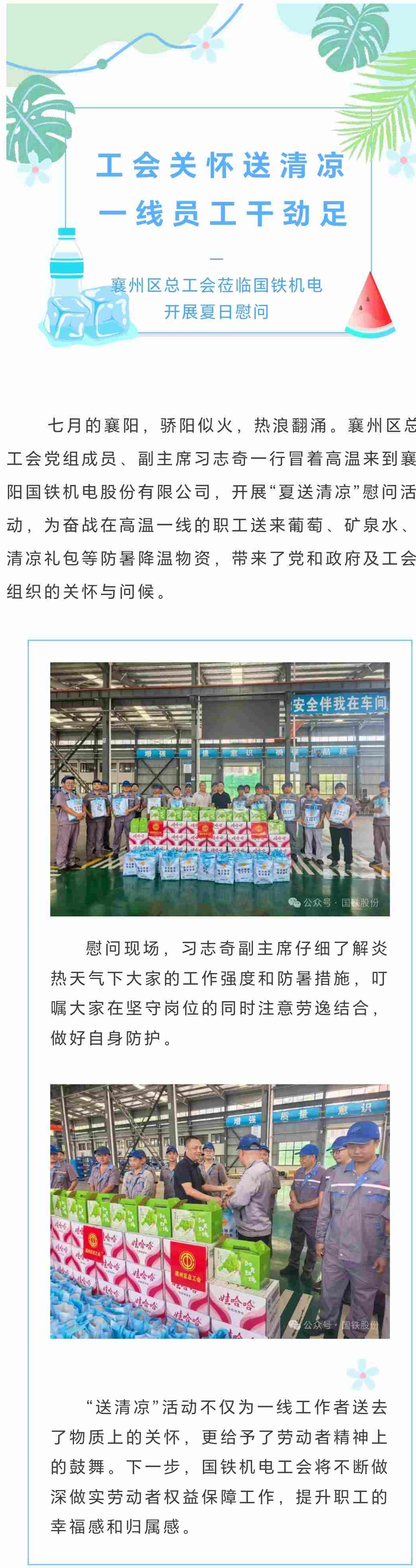 夏日送清涼 關(guān)愛沁人心!襄州區(qū)總工會(huì)蒞臨國鐵機(jī)電開展夏日慰問
